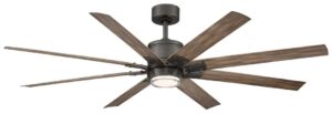 The 66′ Renegade Ceiling Fan comes in oil rubbed bronze color with a matte black finish. It has Barn wood ABS finished blades, which is responsible for its reliability and durability. It has 8 different blades controlled and operated by a bluetooth hand-held remote control.